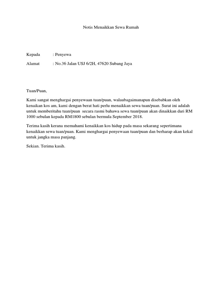 Contoh Surat Notis Kenaikan Sewa Rumah Contoh Surat
